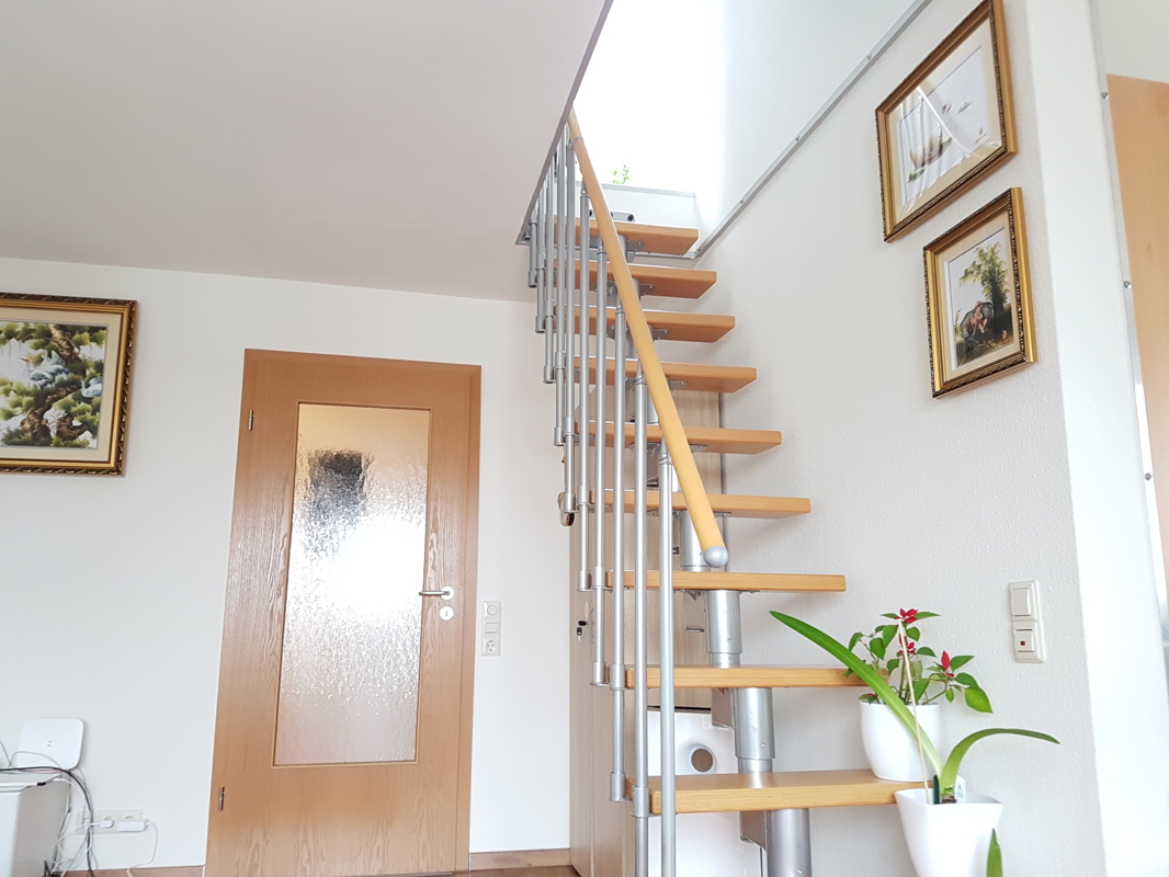 Diese ruhige, helle und sehr schöne 3,5 Zimmer Dachgeschosswohnung befindet sich im 2.OG eines Mehrfamilienhauses. Die Wohnung besticht nicht nur durch die wunderschöne Aussicht über die schwäbische Alb, sondern bietet durch den durchdachten Grundriss ausreichend Platz und Flair für Ihre ganz persönlichen Wohnideen.Eine Einbauküche (inkl. AEG-Geräte) ist vorhanden und wartet auf Ihre Kochkünste. Durch den ausgebauten Dachspitz mit Einbauschränken und Bühne ergibt sich noch mehr Fläche und kann als Stauraum oder Arbeitszimmer genutzt werden.