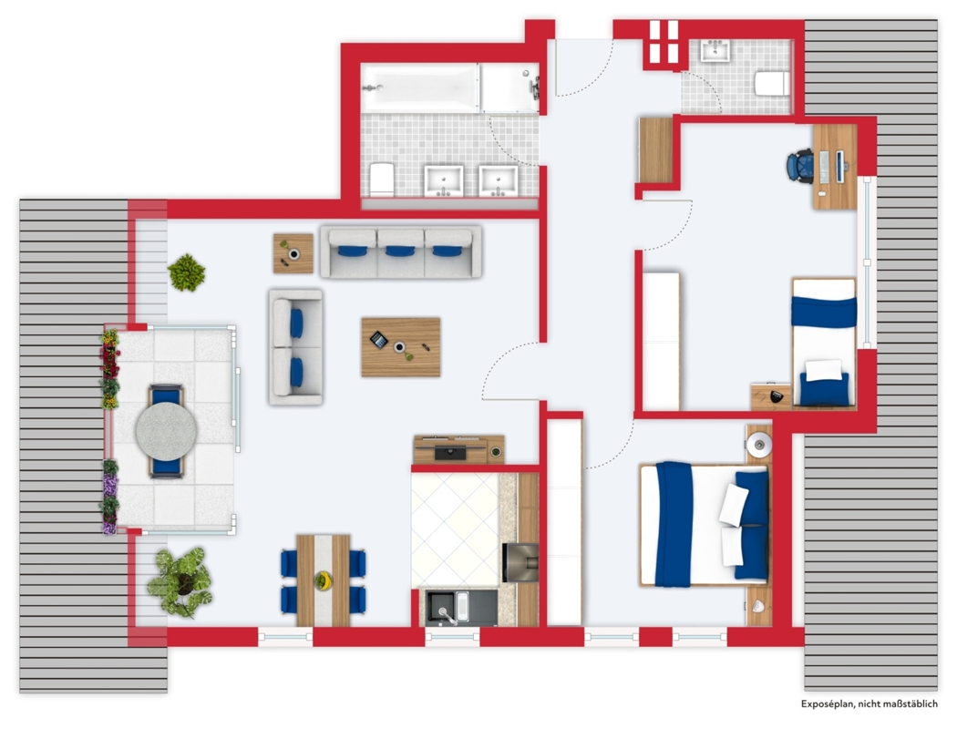 Die Wohnfläche beträgt ca. 90 m² Wohnfläche (inkl. ausgebauter Dachspitz).